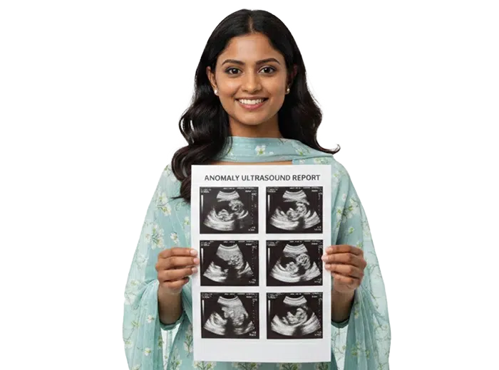 An Anomaly Ultrasound is a detailed pregnancy scan usually done between 18–22 weeks to assess the baby’s growth and detect any structural abnormalities. The procedure takes about 30–45 minutes, and the report is ready within 6 hours. The cost is ₹3,900, and since it uses sound waves instead of radiation, it is completely safe for both mother and baby.