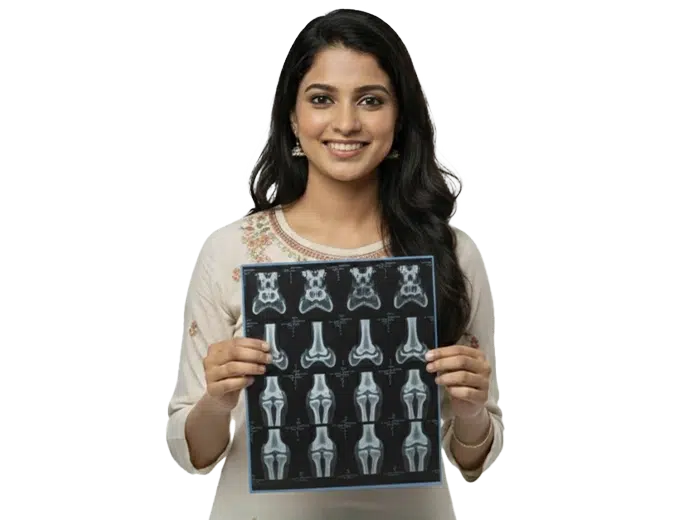 A CT Joints scan helps visualize bones and joint structures in high detail to detect fractures, dislocations, or arthritis-related changes. The procedure takes about 10–15 minutes, and the report is ready within 6 hours. The cost ranges from ₹2,500 to ₹3,000, and the radiation exposure is minimal and within safe diagnostic limits.